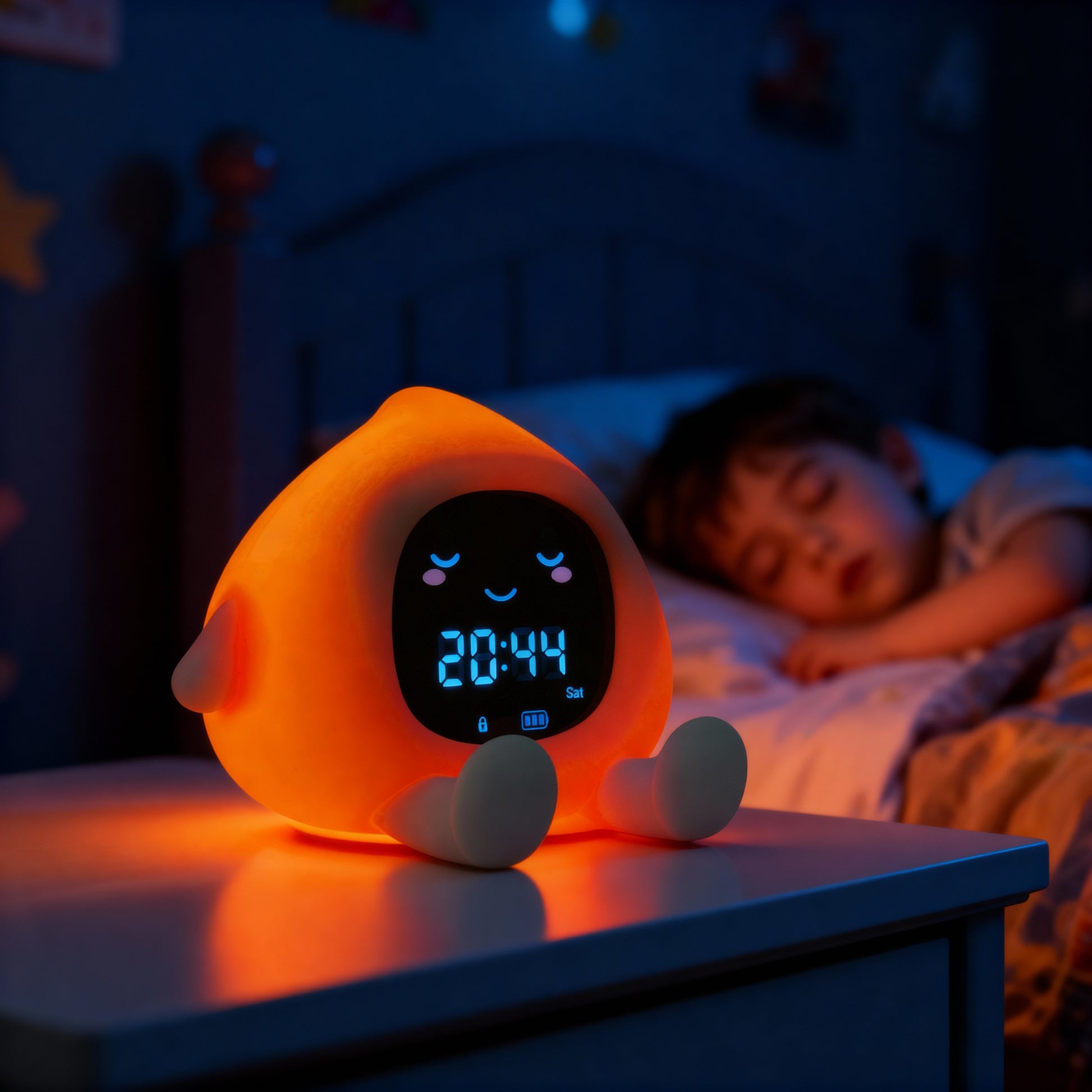 Du indtaster sengetid og opvågningstid via timerfunktionen. Lumulu søvntræneren vil derefter automatisk ændre farven på sit lys og ansigtsudtryk for at vise barnet, at det er "tid til at sove" eller "tid til at stå op." Dette gør det nemt for børn at forstå og enkel for dig som forældre at håndtere.